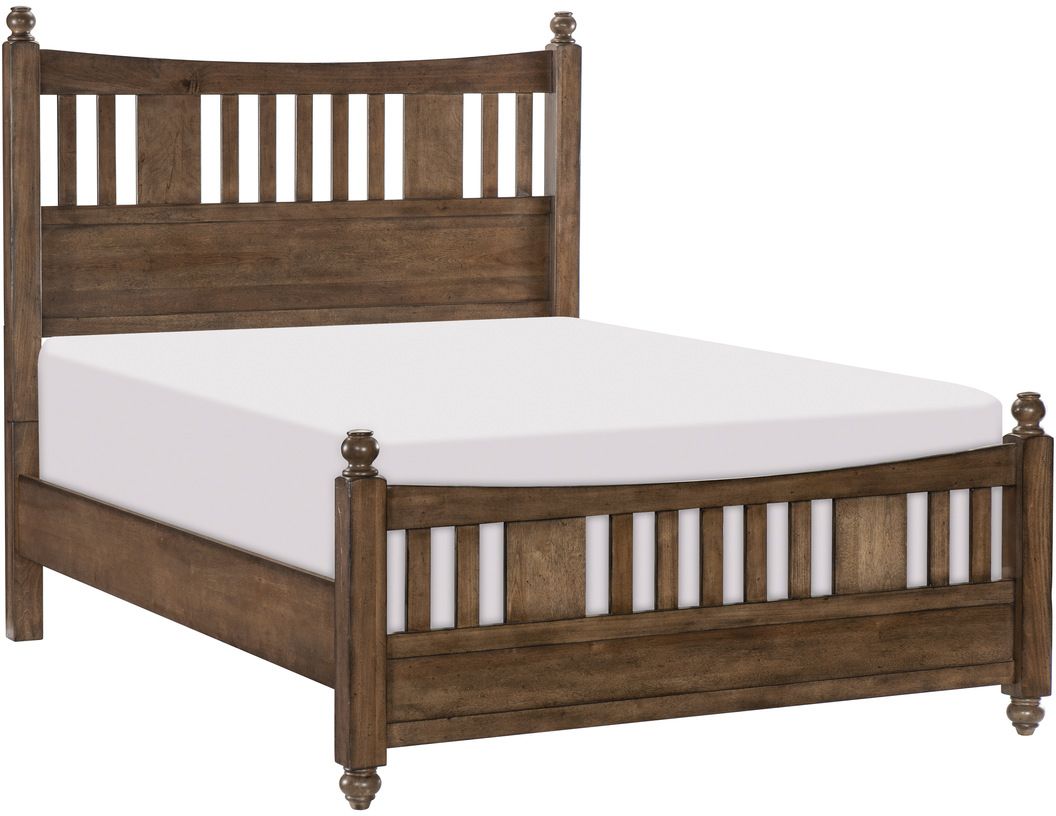 Finial topped posts frame the vertical slats of the Eastern King bed’s design.