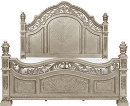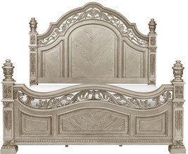 Traditional design elements reign at every turn – egg and dart molding, acanthus leaf carving, bead molding, gold tipping and extravagant carvings – creating a sophisticated look for your bedroom. Metal scrollwork provides additional visual interest to the headboard and footboard.Read More