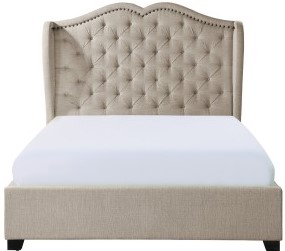 The high wing-back design of the fully upholstered queen bed features neutral toned fabric accented with profile-defining nail head trim and pleated button tufting, solidifying the traditional look of the collection.Read More