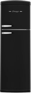 Timeless style meets efficiency in Unique Appliances 11 cu. ft. retro top-mount, Energy Star, frost-free refrigerator. Featuring chrome accents, LED display, adjustable glass shelves, frost-free cooling and Super Freeze Mode, it blends style with performance. Stay organized with a wine rack, ice tray, and humidity control crisper while the digital control panel and door alarm ensure convenience and peace of mind.Read More